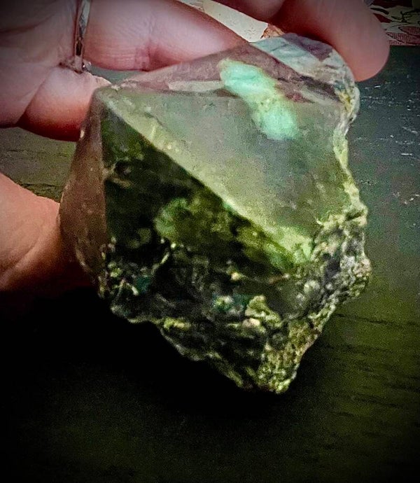 This stunning genuine emerald half polished point has the most beautiful deep green emerald inclusions, is quite heavy and is approximately 5-7cm tall. A rare collector's piece.