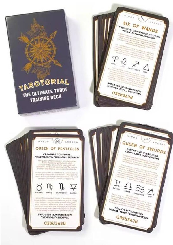 78 Tarot training cards with meanings to help beginner tarot reaaders. These can be paired with another tarot deck (preferably our Meaning Tarot Deck) to support with tarot training.