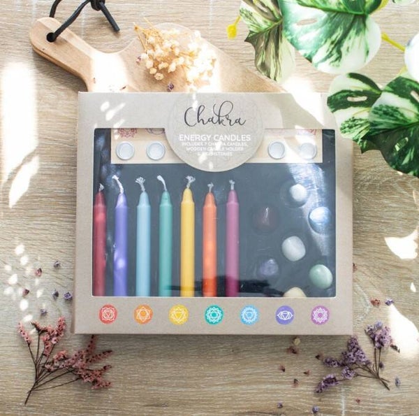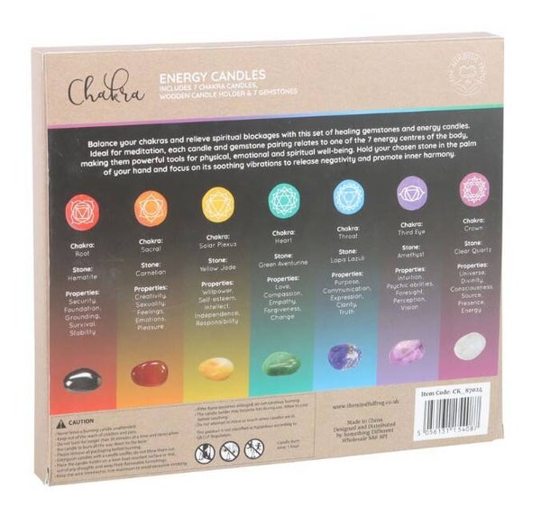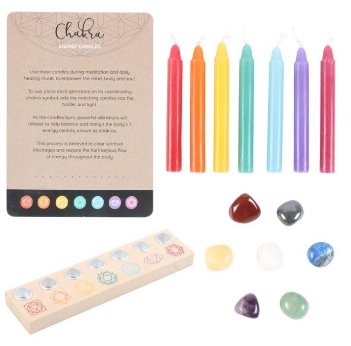 Perfect for meditation and energy healing, this chakra candle and crystal healing gift set promotes balance and harmony through the combined power of light and crystal energy. The set includes seven chakra candles, each corresponding to one of the seven chakras. It also features a beautiful wooden candle holder and seven gemstones, each aligned with a specific chakra. Simply hold your chosen stone in the palm of your hand and focus on its soothing vibrations to release negativity and promote inner harmony.