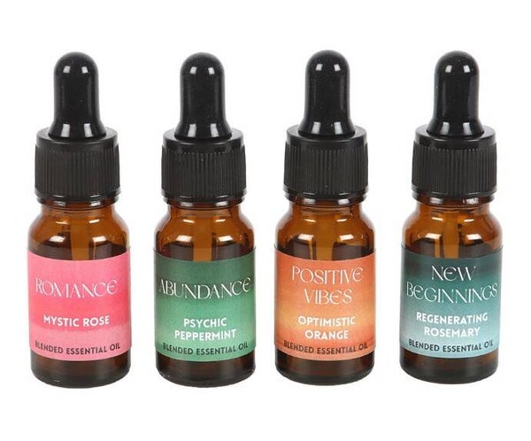 Manifest- Focus your thoughts with this Manifestation collection of ready to use, blended essential oils. The set contains 4 x 10ml bottles with a dropper tool lid, helping to apply just the right amount of oil for each use. The scents you'll discover in this set are: Romance - Mystic Rose, Abundance - Psychic Peppermint, Positive Vibes - Optimistic Orange, New Beginnings - Regenerating Rosemary. Natural essential oils pre-diluted with vitis vinifera seed (grape seed) oil.