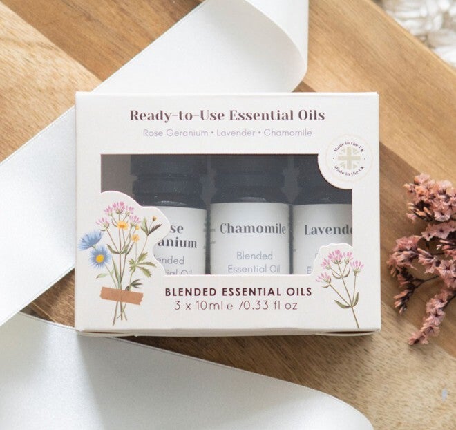 Floral-Create the perfect aromatic atmosphere or bathtime soak with this Set of 3 Floral Blended Essential Oils. Crafted with a natural blend of Rose Geranium, Lavender, and Chamomile, these essential oils are designed to help you relax and unwind after a long day. Set includes three 10ml bottles. Vegan and bottled in the UK.