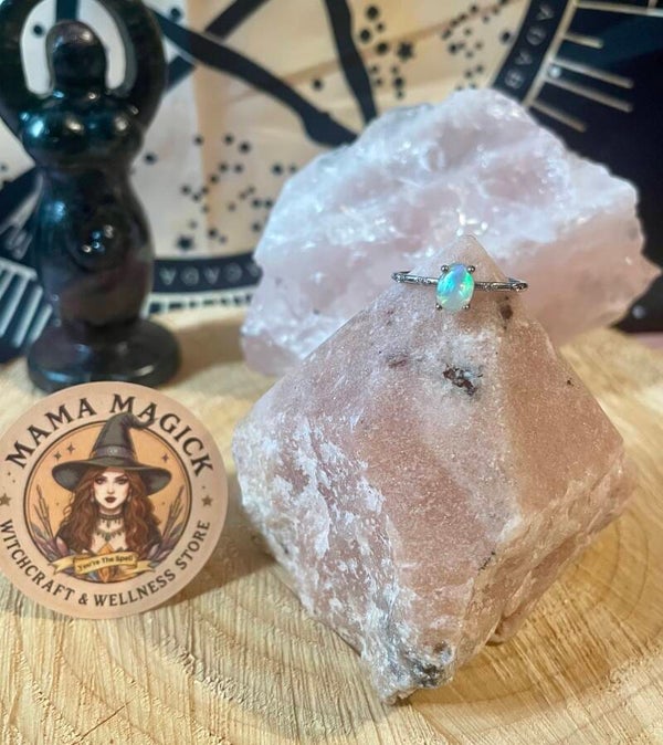 This stunning crystal is set in sterling silver with an adjustable mechanism to fit all ring sizes.