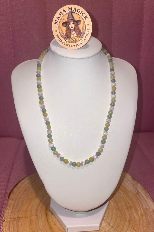 Elevate your energy and intention with these Handmade, Mixed Crystal Choker Necklaces, handcrafted with carefully selected crystals to align with specific magical purposes. Each choker is a unique spell talisman, infused with a personally cast spell to support your intention—whether it’s protection, pain healing, trauma relief, abundance and money attraction, or opening and enhancing your intuition and third eye. Designed to be worn close to the heart, these chokers not only make a striking statement but also carry powerful energetic support, helping you stay aligned, grounded, and connected to your magical intentions throughout your day. Perfect for layering, mixing, or wearing as a standalone focus piece, each choker is a wearable spell crafted with care and intention.